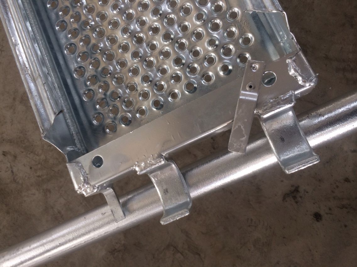 Planks for Tube and Coupler Scaffold: Width: 210mm, 225mm, 240mm, 480mm, etc. Length: 1m, 1.5m, 2m, 2.5m, 3m, 4m, etc. Thickness varies from 1.1mm to 2mm. Pre-galvanized steel is used a lot. These metal scaffolding planks are mostly made without hooks. Scaffold board clamps, also called board retaining couplers, are used to hold and connect these planks.